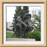 Otra obra del mismo autor, es la placa de bronce que evoca la Jura de la Bandera por Belgrano obsequiada por el Jockey Club al Correo Central en 1938.