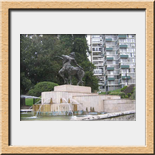El conjunto escultórico sobre un pedestal, configura la parte escultórica de una gran fuente, que evoca la “Jura de la Bandera por Belgrano”.