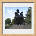 Es una representación de la mitología griega; representando a uno de los hijos de Crono: Quirón o Queirón, (mitad hombre mitad animal), es un centauro inteligente, sabio y de buen carácter, a diferencia de la mayoría de su clase y tutor de Aquiles figura que acompaña.